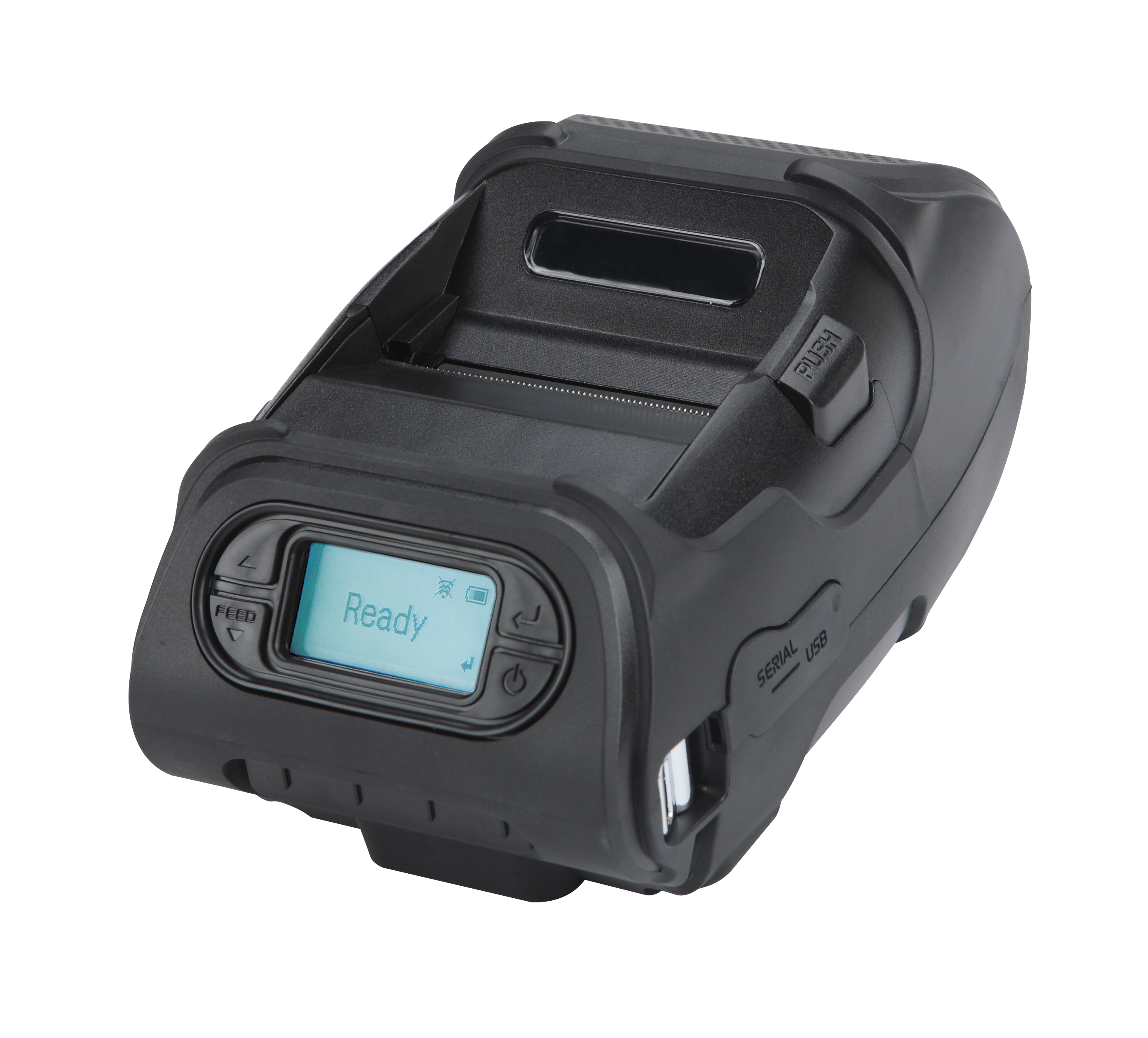 Impressora portatil robusta LK-P12II, impressão térmica direta, 2 polegadas de largura, comunicação Serial/USB/Bluetooth, Memória RAM 8MB e Flash 16MB, compatível com as linguagens ESC/POS, CPCL e ZPL. Velocidade de 127 mm/s. Suporta papel térmico adesivado (etiqueta/GAP), marca preta (black mark) ou contínuo.